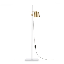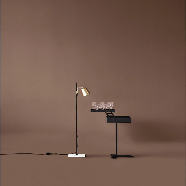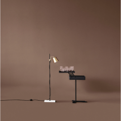 Valaisimen materiaaleissa yhdistyvät posliini, mustaksi lakattu teräs ja messinki, jotka luovat mielenkiintoisia kontrasteja ja tuovat valaisimeen hienostuneen ja ajattoman ilmeen. Posliinijalusta antaa tukea ja vakautta, kun taas messinkinen varjostin ja pyörivä varsi tuovat ripauksen eleganssia ja monikäyttöisyyttä.