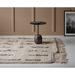Laine matto on solmittu käsin luonnollisesta, värjäämättömästä ja käsittelemättömästä lampaan villasta.