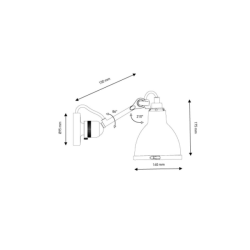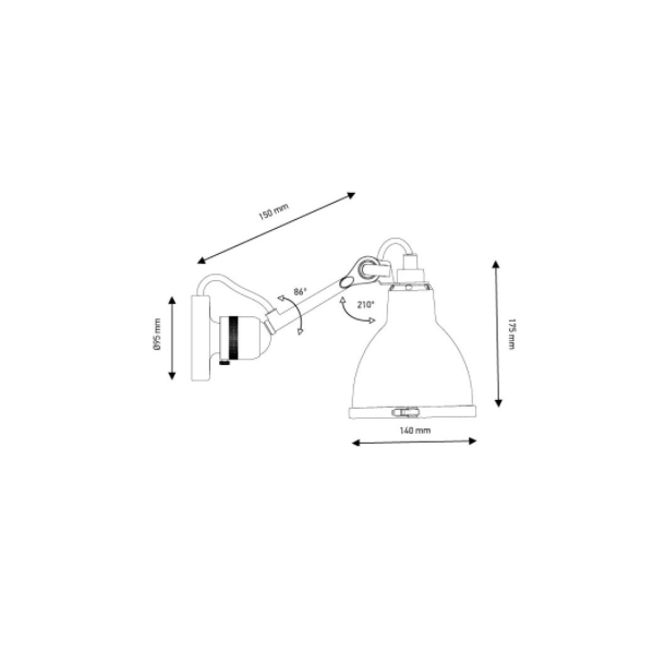 Mitat: varren ulottuvuus 15 cm, varjostimen ø 14 cm, varjostimen korkeus 14 cm, seinäkiinnikkeen ø 9,5 cm