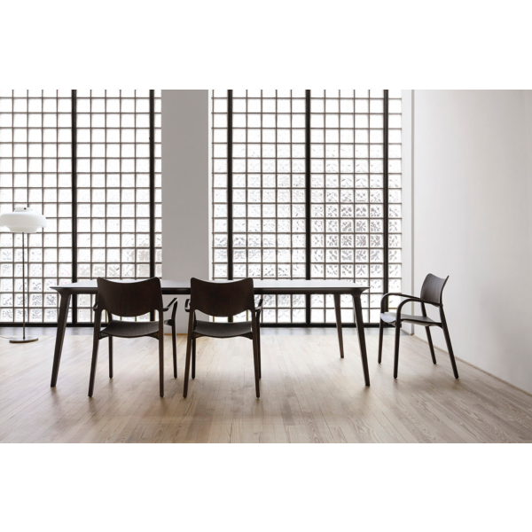 Stuan Lau-ruokapöytä on kaarevalinjainen ja siro. Espanjalaisen Jesus Gascan vuonna 2013 suunnitteleman Lau-pöydän muotoilun juju piilee sen yksityiskohdissa, kuten kaltevien jalkojen kaarevassa yhteydessä pöytälevyyn. Rakenteellisesti vankka Lau on kuitenkin visuaalisesti siro ja kevyt.