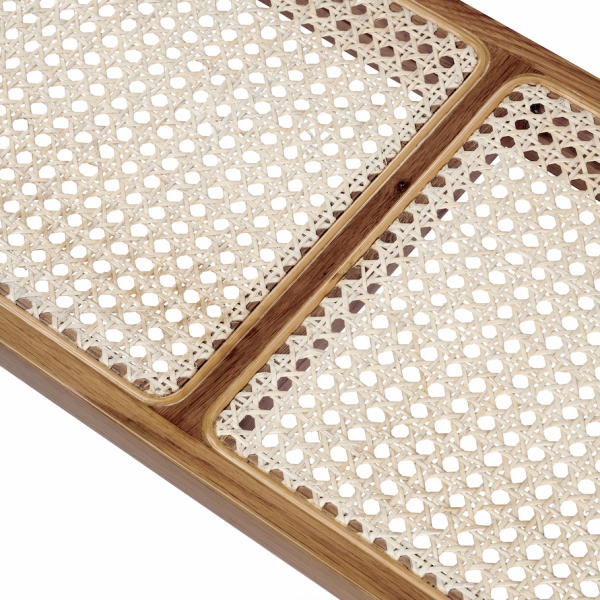 Tyylikäs rottinki luo läpikuultavia pintoja, jotka korostavat kaunista ja yksinkertaista rakennetta.