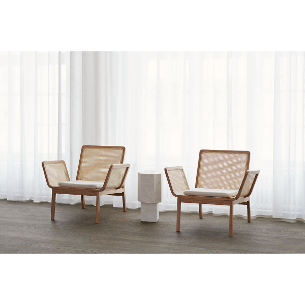 Tyylikäs rottinki luo läpikuultavia pintoja, jotka korostavat kaunista ja yksinkertaista rakennetta.