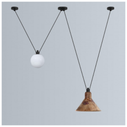 Tämä N° 324 versio on mielenkiintoinen diagonaaliin sijoittuvien runko-osiensa takia, valaisimessa on aina 2 valonlähdettä ja neljä säädettävää johtoa.