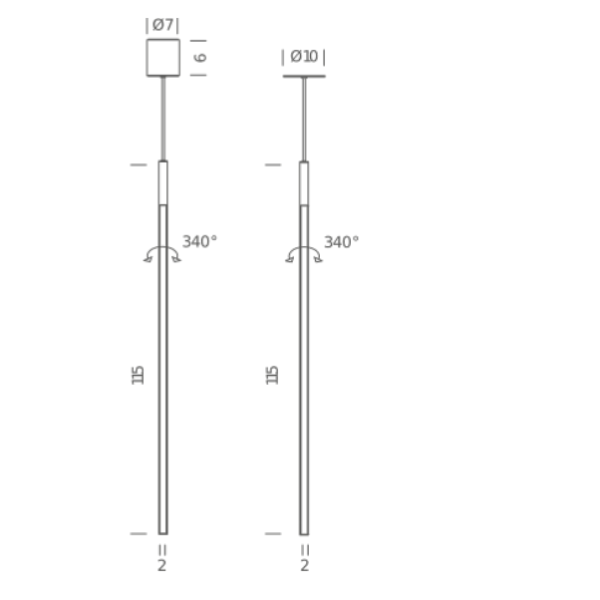 Mitat: korkeus 115 cm, leveys 2 cm, syvyys 2 cm, johdon ja vaijerin pituus 3 m