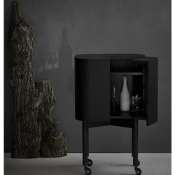 Loud baarikaappi on kaunis, persoonallinen ja käyttökelpoinen huonekalu jonka olemus tuo hienostunutta eleganssia kaikkiin tiloihin. Sen siro ja paikoin mennyttäkin -vaikkakin uudella tavalla - huokuva muotokieli ja olemus vie ajatukset Art Nouveau-henkeen.