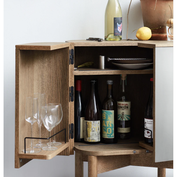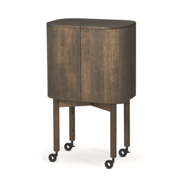 Tämän liikuteltavan baarikaapin viimeistellyt yksityiskohdat ilahduttavat vaativaa kuluttajaa.