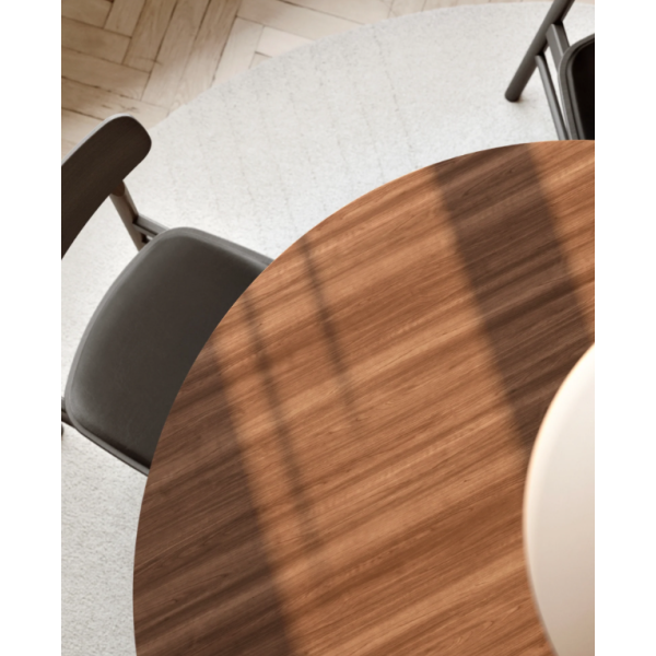 Puisen pyöreän pöytälevyn ja keskitetyn jalustan ansiosta Ludo tarjoaa runsaasti jalkatilaa ja myös pöytäpintaa istujille.