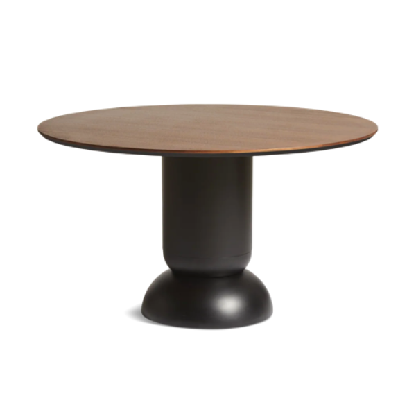 Woudin persoonallinen pyöreä pöytä Ludo on visuaalisesti vahva, pylväsmainen ruokapöytä, joka ilmentää yksinkertaisuuden ja tasapainon kauneutta ollen samalla myös koristeellinen ja viittauksiltaan klassinen.