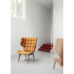Mammoth tuolissa kaunis, puinen selus yhdistyy mukavaan, pehmustettuun istuinosaan ja yksityisyyttä korostavat siivekkeet luovat istumiskokemuksesta intiimin ja rauhoittavan.