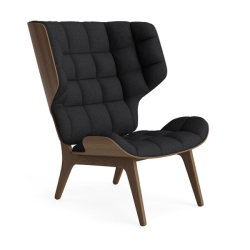 Mammoth tuolissa kaunis, puinen selus yhdistyy mukavaan, pehmustettuun istuinosaan ja yksityisyyttä korostavat siivekkeet luovat istumiskokemuksesta intiimin ja rauhoittavan.