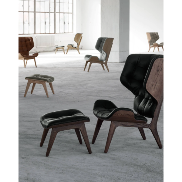 Mammoth ottoman - rahi istuu kauniisti Mammoth nojatuolin viereen. Siinäkin kaunis, puinen runko yhdistyy mukavaan, pehmustettuun istuinosaan.