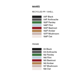 Marée 401 on valmistettu kierrätetystä muovista kahdeksassa Montanan värissä: Oat, Mushroom, Amber, Beetroot Flint, Parsley, Anthracite and Black.