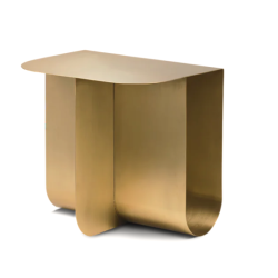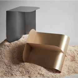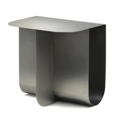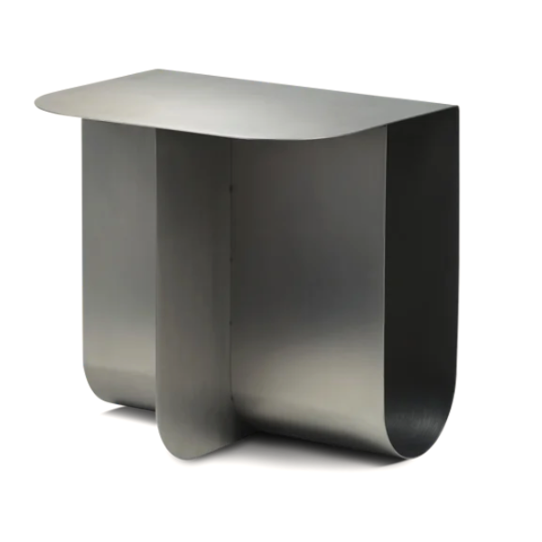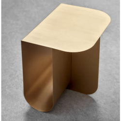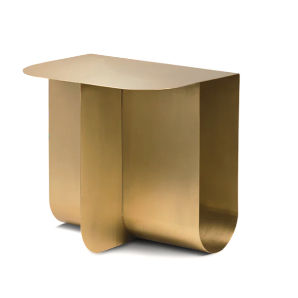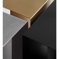 Pöydän nelisivuinen muoto on rakennettu kahdesta metallilevystä, jotka on taitettu yhdeksi kokonaisuudeksi. Mass on saatavana messinkisenä, teräksisenä ja mustaksi maalatulla pinnalla.