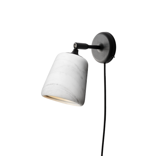 Tämä marmorikupuinen valaisin kuuluu uudempaan, The Black Sheep Edition -sarjaan Material-valaisimesta. Valaisimen voi asentaa seinään myös kiinteänä, niin että johto jää piiloon.