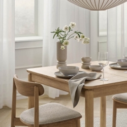Yksinkertainen mutta hienostunut ruokapöydän tuoli, valmistettu käsin massiivisesta, FSC™-sertifioidusta tammipuusta. Studio Nooin suunnittelema tuoli on ajattoman tyylikäs ja laadultaan kestävä – hillityn minimalistinen muotoilu huokuu pehmeyttä ja pitkäikäisyyttä. Pehmeät ja kutsuvat muodot korostavat tammen luonnollista kauneutta ja tekevät tuolista lämpimän sekä tervetulleen lisän mihin tahansa ruokailutilaan.