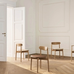 Tuoli on valmistettu käsityönä massiivisesta, FSC™-sertifioidusta tammesta. Sen ajaton muotoilu huokuu pehmeää minimalismia ja kestävyyttä, kun taas sileät, pyöristetyt muodot tuovat esiin puun luonnollisen viehätyksen.