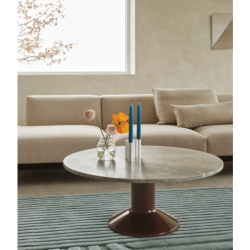 Pyöreä Midst-sohvapöytä on hienostunut yhdistelmä veistoksellista muotoa ja ylellisiä materiaaleja.