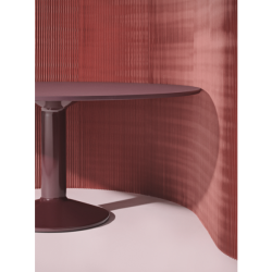 Monoliittinen jalusta, joka on valmistettu teräksestä ja viimeistelty kestävällä kiiltävällä pinnalla, on kaunismuotoinen ja erottuu edukseen muista keskijalkaisista, pyöreistä pöydistä.