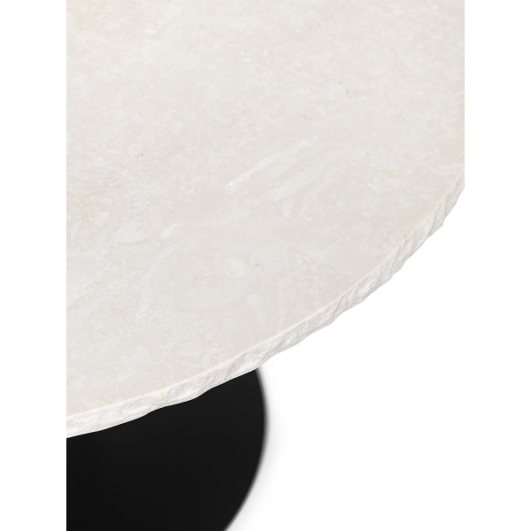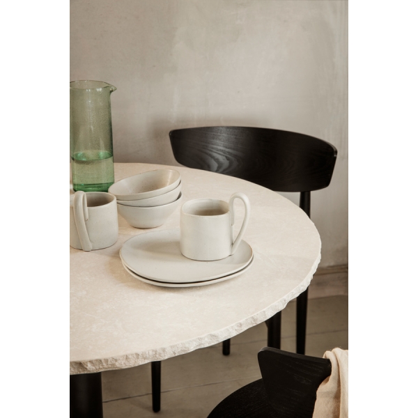 Fermliving Mineral Dining table on tyylikäs pienikokoinen ruokapöytä pieniin asuinneliöihin. Bianco curia- marmorista veistetty pöytä huokuu hillittyä ylellisyyttä. Sen brutaalin rouheat laidat antavat sille tunnusomaisen ilmeen ja tuovat muuten hillittyyn pöytään särmää ja luonnetta. Mineral Dining- pöydän rouheat laidat on veistetty käsin taltalla, joten jokainen pöytä on uniikki taideteos.
