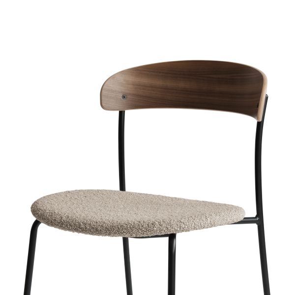 Missing Chair on New Worksin versio vaatimattomasta, mutta toimivasta ja kauniista kahvilatuolista. Se on keveä, pinottava, kestävä ja kaunispiirteinen.