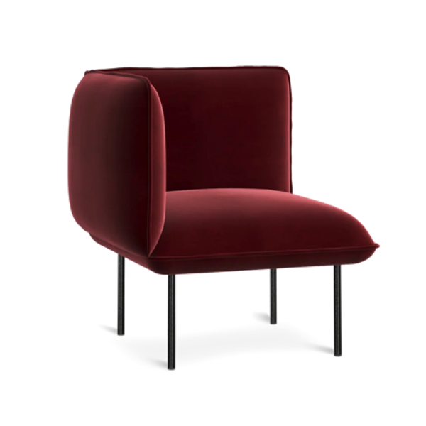 Väri: tummanpunainen verhoilu, mustat jalat