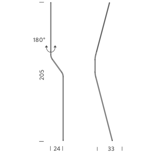 Valaisimen runko on mattamustaksi maalattua alumiinia. Valonlähteenä on himmennettävä LED, joka on upotettu valaisimen minimalistisen siroon varteen. Varren yläosa kääntyy ympäri 180 astetta, joten valonsuuntaa pystyy ohjaamaan sen mukaan halutaanko suoraa vai epäsuoraa valoa. Valaisin on himmennettä, himmennin löytyy johdosta. Valaisimeen on saatavilla myös kiinnityskappale seinäkiinnitystä varten.