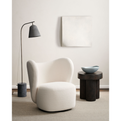 Little Big tuolin liioiteltu pyöreämuotoisuus ei varmasti jätä ketään kylmäksi. Kaartuva ulkomuoto ja yksityisyyttä korostava sekä syliin kutsuva muotokieli luovat istumiskokemuksesta intiimin ja rentouttavan.