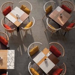 Materiaali: lakattu ja petsattu pyökki, kankaat: Kvadrat Remix