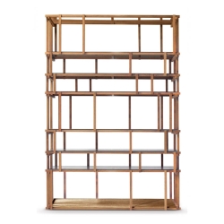 Off Cut kirjahylly on valmistettu erikokoisista 20 x 20 mm massiivitammi paloista. Voit valita luonnontammen, amerikkalaisen pähkinäpuun tai hiilellä värjätyn pähkinäpuun. Kaikki vaihtoehdot on viimeistelty vesiohenteisella akryylilakalla. Off Cut koostuu yhteensä kuudesta hyllystä, joista jokaisessa on 6 mm paksu karkaistu lasi. Alaosa on valmistettu puusta samalla viimeistelyllä kuin hylly, ja siinä on sisäänrakennetut painot, jotka antavat hyllylle vakautta.