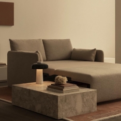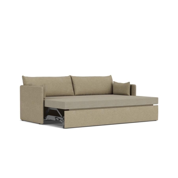 Muunneltavuus on Offset-sohvasängyn ydin – se muuntautuu vaivattomasti tyylikkäästä sohvasta mukavaksi vuoteeksi. Se on ihanteellinen vierasmajoitukseen tai tilankäytön tehostamiseen monikäyttöisissä huoneissa, ja se mukautuu helposti muuttuviin tarpeisiin. Tukea ja pehmeyttä yhdistävä muotoilu ilmentää yksinkertaisuutta puhtaalla, hillityllä olemuksellaan, joka on luotu vastakohtien yhdistelmästä: ulkoasultaan yhtä aikaa jykevä ja herkkä, arkkitehtoninen mutta kutsuva ja rento. Jos olet kiinnostunut sohvasta mutta verhoiltuna toisin, ota aina yhteyttä suoraan liikkeisiimme.