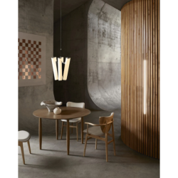 Oku-pöytälevy on valmistettu FSC-sertifioidusta tammiviilusta, jonka pyöristetyt reunat lisäävät hienostuneisuuden vaikutelmaa. Yksinkertaisen kaunis pöytä korostaa materiaaliaan.