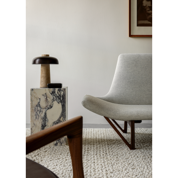 Materiaalit: pähkinäpuu, muovi, teräs, massiivipyökki, vaneri, vaahtomuovi, huopa, peittovaahtomuovi, verhoilu Kvadrat Hallingdal 65 200