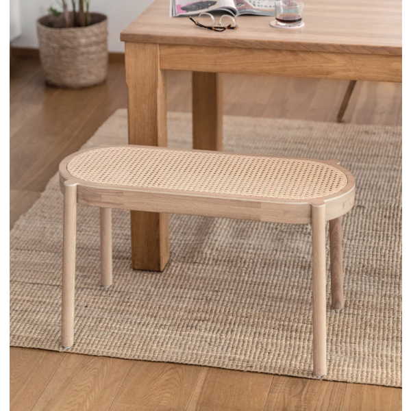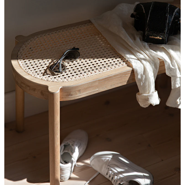 Materiaali: savukäsitelty, maalattu tai valkoöljytty tammivanerilaminaatti ja -massiivitammi, rottinki natural