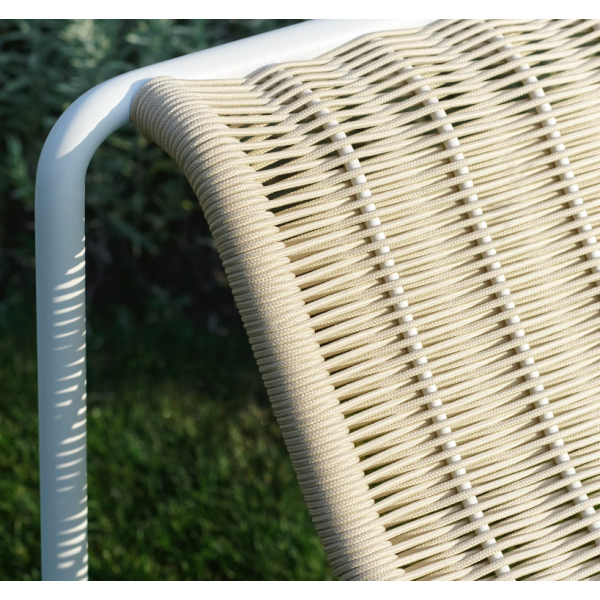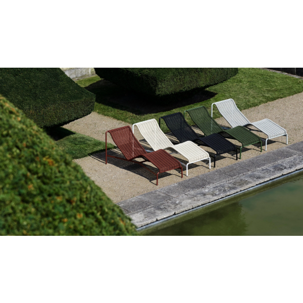 Palissade Cord –aurinkotuoli päivittää HAYn rakastetun Palissade-sarjan ilmeen. Tyylikkäässä tuolissa on yhä sama tuttu kaarevasti muotoiltu runko, mutta totutun teräksen sijaan Palissade Cord -aurinkotuolin istuimen materiaalina on käytetty kierrätettyä polyesteria, joka tuo sopivan kesäistä keveyttä tuolin muuten vankkaan ulkomuotoon.