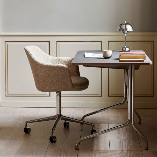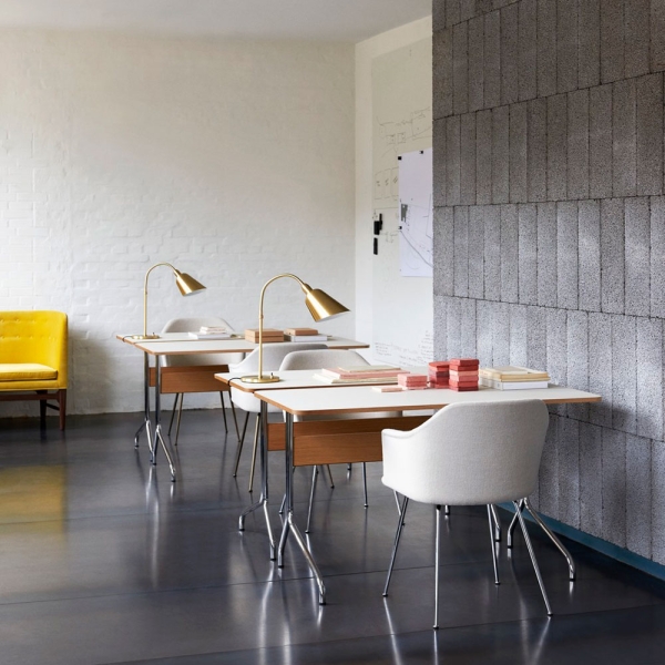 Pieni ja siro Pavilion-työpöytä on ideaalinen ratkaisu erityisesti kotitoimistoon. Palkitun designer-duon Anderssen & Voll:n suunnittelema Pavilion-sarja on saanut innoituksensa Kööpenhaminan ikonisesta Langelinie Pavilionista. Pöydän ilmavassa ja hienostununeessa olemuksessa näkyy viitteitä 1950-luvun modernismiin.