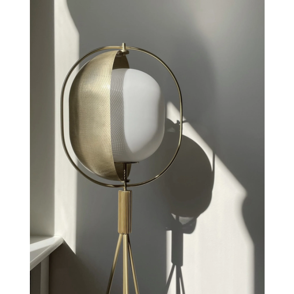 Persoonallinen lattiavalaisin Pearl on valoisa kunnianosoitus japanilaisten lyhtyjen ajattomalle kauneudelle. Pehmeästi sisältäpäin hehkuva opaalilasipallo on osittain hienovaraisesti rei'itetyn metallilevyn ympäröimä, luoden monimutkaisia valo- ja varjokuvioita, jotka muuttuvat jokaisella käännöksellä.