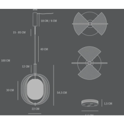 Mitat: L35 / W35 / H54,5 CM , kattokupu ø 6 cm, korkeus 19,5, johto max 290 cm