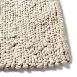 Peas Random -matto on kudottu Intiassa käyttäen käsin villasta pyöriteltyjä, epäsäännöllisen kokoisia palleroita. Pinnan vaihteleva struktuuri, ja villan luonnonmukainen värivaihtelu tuovat matolle orgaanisen ja harmonisen, mutta kiinnostavan ilmeen.