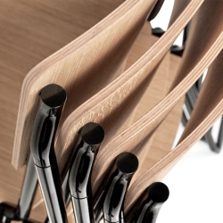 Loistavan pinottavuutensa ansiosta tuoli sopii oivallisesti myös julkisiin tiloihin, mutta sen kaunis, kiinnostava muotoilu solahtaa myös kotoisempiin sisustuksiin.