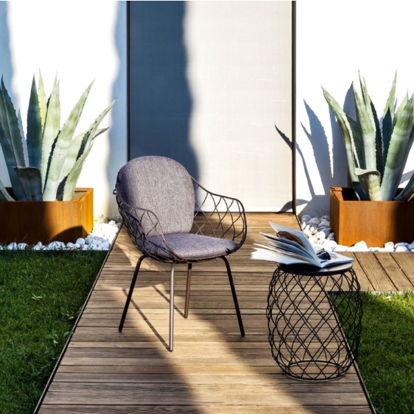Ulkokäyttöön soveltuvassa Piña tuolissa on ajatonta charmia, rakenteeltaan se kevyt ja siro mutta myös mukava istua isomman pehmusteensa takia. Tuolin yhdistäminen monenlaisiin ympäristöihin luo mielenkiintoisia kokonaisuuksia. Verhoiluosat ovat irroitettavia, joka helpottaa niiden puhtaana pitoa.