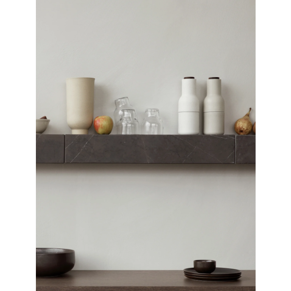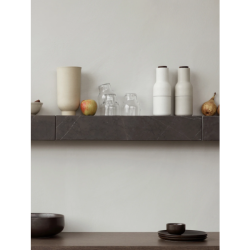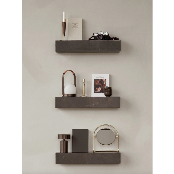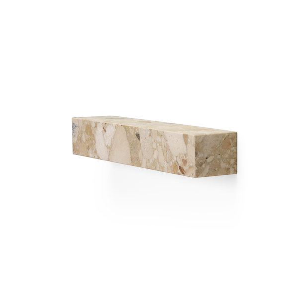 Plinth Shelf -hyllyn minimalistinen profiili on muotoiltu joko harmaasta Kendzo-marmorista tai Kunis Breccia -kivestä.