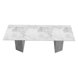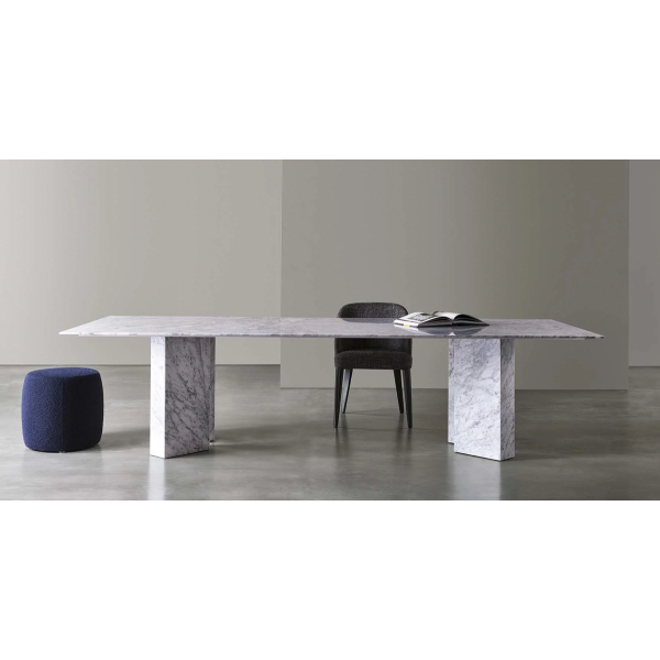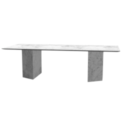 Tässä suorakaiteenmuotoisessa 2K pöydässä on kuitenkin blokkimaiset marmorijalat ja materiaalina on tuttu Carrara, mattana. Marmoriblokkijalkoja saa myös malliltaan toisenlaisina, versiona 4W jolloin suoria marmorijalkoja on 4 kpl. Saatavilla myös useita kokoja- 220, 280, 300, 350 cm.