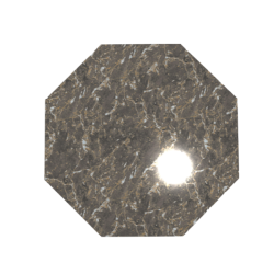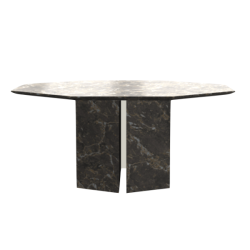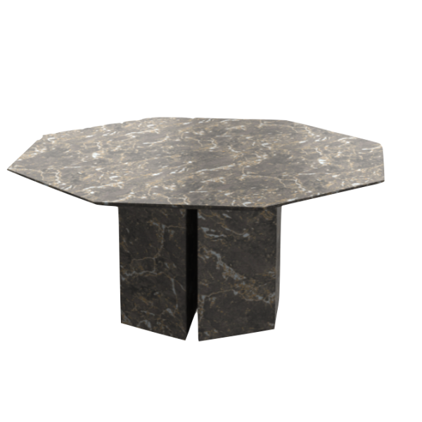 Tässä kahdeksankulmaisessa 2K pöydässä on blokkimaiset marmorijalat ja materiaalina on Valentin Grey marmori, kiillotettuna. Tätä persoonallista muotoa voit tilata myös muissa materiaaleissa.