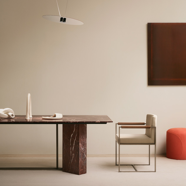 Meridianin kaunis Plinto pöytäsarja huokuu ylellisyyttä. Saatavilla on useita kauniita marmorivaihtoehtoja mutta sarjan pöytiä saa myös puisina ja maalattuina sekä vaihtoehtoina joissa raskas materiaali- marmori tai puu yhdistyy visuaalisesti kevyempään metallirunkoon, kuten tässä pöydässä - jota on aina saatavilla messingin ja hopean värisenä sekä mustana.