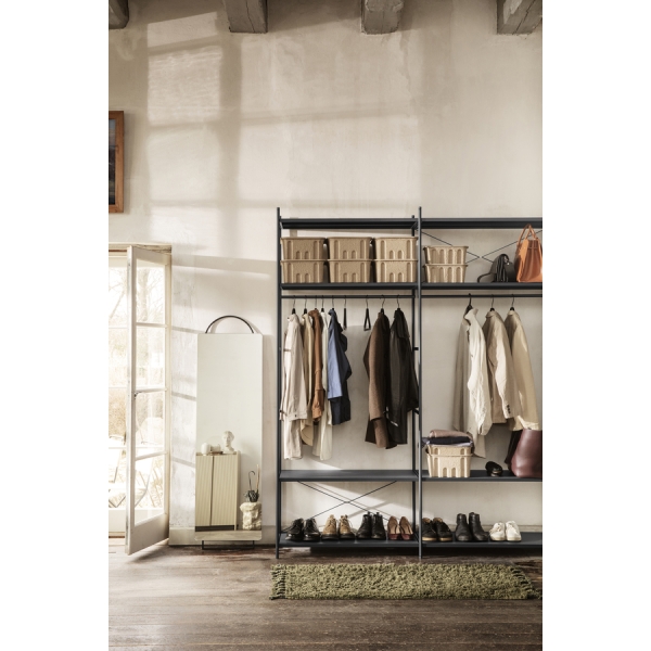 Tämä Punctual -hyllykokonaisuus sisältää 2 kpl ”Ladder 6” pystyelementtiä, 4 kpl perforoituja metallisia hyllylevyjä, kaksi tukiristikkoa sekä yhden vaatetangon. Kokonaisuus suositellaan kiinnitettäväksi seinään mukanatulevalla turvakiinnityskappaleella.
