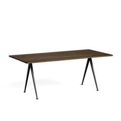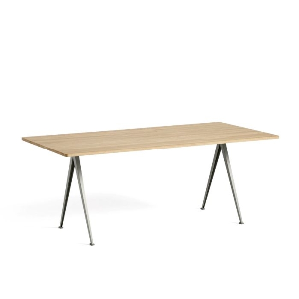 Kevytrakenteinen mutta kestävä ja persoonallisen ajaton Pyramid pöytäsarja on kauniisti kestänyt aikaa. Alunperin Pyramid suunniteltiin jo 1950-luvulla jolloin se myös jo huomioitiin innovatiivisen teräsrakenteensa takia. Hay on oivaltavasti ottanut pöydän uudelleen tuotantoon yhteistyössä Ahrendin kanssa ja pöytäsarjan henki istuukin tähän hetkeen, 2000-luvun alkukymmeniin vaivattomasti. Särmikäs, yksinkertainen, ekologinen, arkkitehtooninen ja kevyen kulmikas ovat adjektiiveja jotka kuvaavat tätä klassikkoa. Kestävän ja funktionaalisen jalkarakenteensa takia sarjan pöydät toimivat niin kotioloissa kuin julkisissa sisustuksissakin. Halutessasi voit myös yhdistää ne toisiin klassikoihin, Result tuoleihin. Pöytiä on saatavilla eri kokoja joissa kaikissa on tamminen (matta/kirkaslakattu tai savutamminen) pöytätaso sekä joko beiget tai mustat, pulverimaalatut teräsjalat. Sarjan 02 pöytiä, joissa metallijalat on sijoitettu pöydän alle, voit käyttää monipuolisesti sekä työ- että ruokapöytinä.