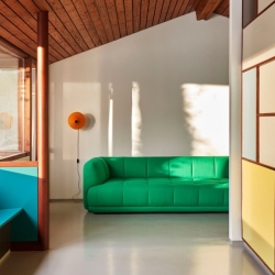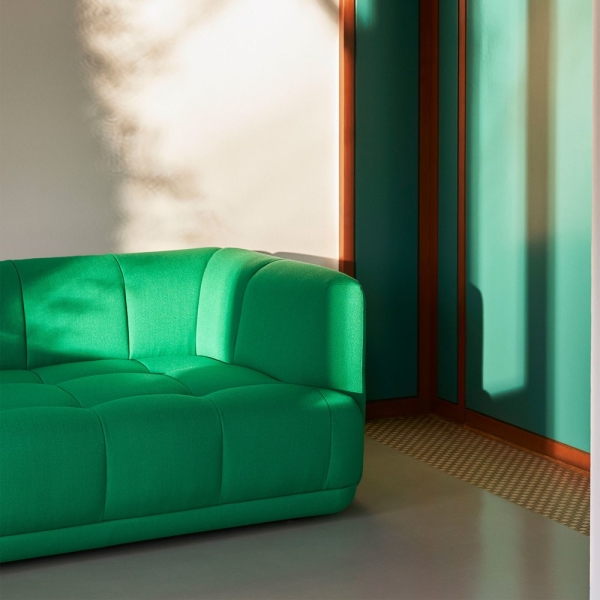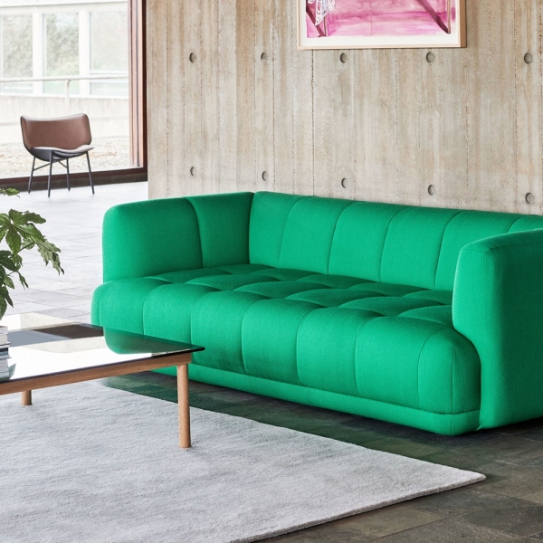 Quilton 3-istuttava sohva kuuluu suunnittelijatiimin Doshi Levienin vuonna 2021 suunnittelemaan modulaariseen, leikkisillä tikkauksilla viimeisteltyyn Quilton-sohvasarjaan. Quilton-sohvassa on reilut mittasuhteet ja veistokselliset muodot, joiden ilmettä tikkaukset pehmentävät. Sohvan tikkaukset tuovat sille omaleimaisen, kutsuvan olemuksen.