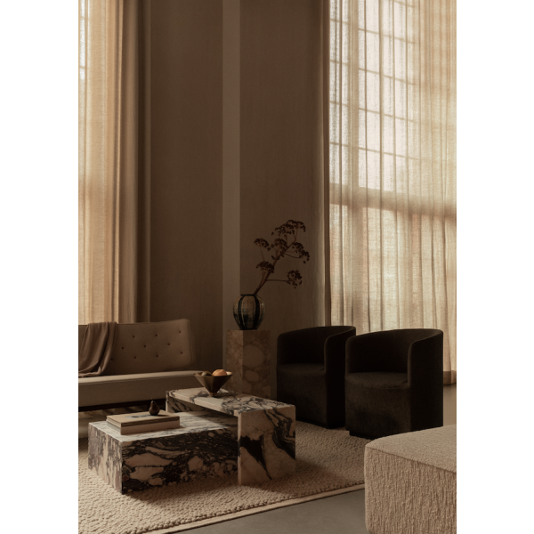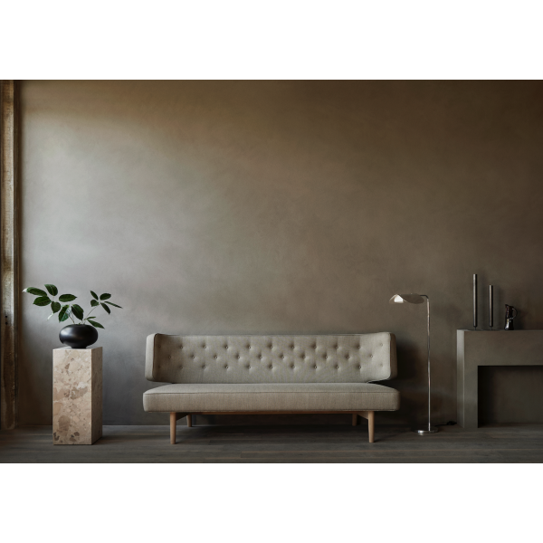 Sohva on kaunis kaikista kulmista, sen kaarevat linjat ja avoin rakenne toivottavat istujan tervetulleeksi ja syleilevät sitä, kun taas tikattu selkänoja korostaa sen muotoilun täsmällisyyttä. Radiohus on sohva joka mielellään vaatii tilaa seistä vapaasti huoneessa- näin sen kauneus parhaiten pääsee esille.
