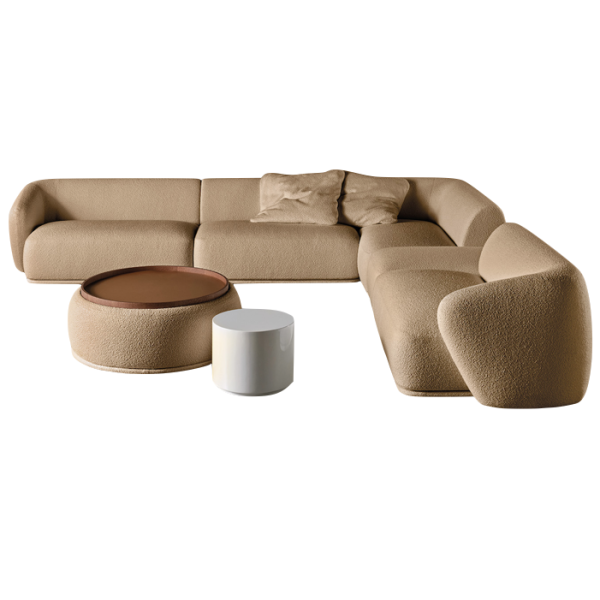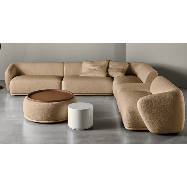 Pyöristettyine istuimineen ja selkänojineen elementit täydentävät toisiaan vapaasti seisovina tai nurkkaan sijoitettavina kokoonpanoina. Puoliympyrän, puolisuunnikkaan, pyöreän tai suorakaiteen muotoiset rahit voivat toimia myös alustoina erikseen hankittaville tarjottimille, joita on saatavilla eri materiaaleista toteutettuina - esim puu, marmori, nahka tai metalli.