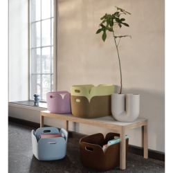 Muuton klassikoksi muotoutunut Restore säilytyskori on toimiva ja lempeä kodin pikkutavaroiden säilyttäjä. Kori on kestävä, ulkomuodoltaan pehmeä ja pyöristetty ja nimi Restore viittaa sen valmistusmateriaaliin - kori on valmistettu kierrätetyistä PET-pulloista - jolloin Restore on myös ekologinen vaihtoehto.